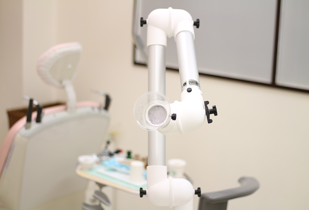 治療中に飛沫する細菌、ウィルス等をお口の外で吸引できる口腔外バキュームを導入しています!